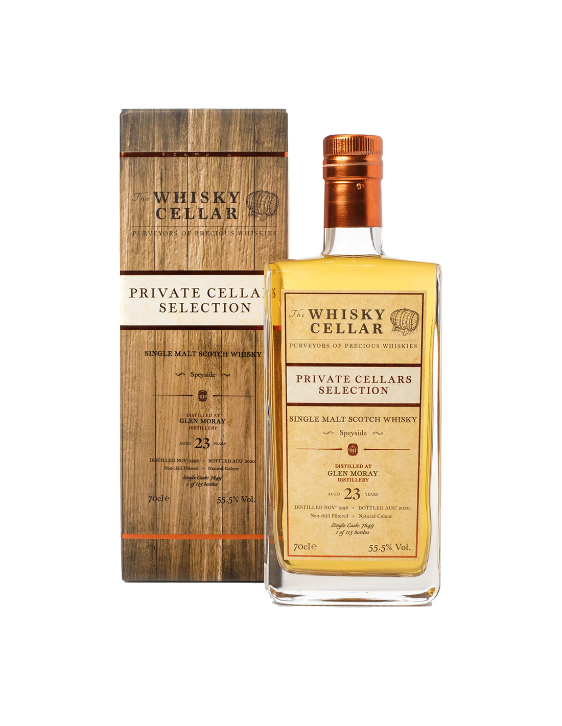 Der Single Malt Scotch Whisky 'Glen Moray' 1996 23 Jahre von The Whisky Cellar ist Teil der ausgewählten und exklusiven Linie 'Private Cellars Selection'. Dieser zarte und milde Whisky mit einem weichen und fruchtigen Stil stammt aus der Brennerei Glen Moray in der Speyside-Region. Er wurde 23 Jahre in einem einzigen American Oak Barrel gelagert, wurde im November 1996 destilliert und im August 2020 abgefüllt. In der Nase Aromen von französischen Pâtisserie-Nüssen, voll mit fruchtigen und krümeligen Süßigkeiten, Zitrusfrüchten und weißer Schokolade. Am Gaumen Butterbrioches, Apfel-Zimt-Torte und kandierte Nüsse, der Abgang bietet ein zartes, aber anhaltendes Gefühl von Sirup und milchigen Cerealien. Es wurden nur 115 Flaschen produziert.
