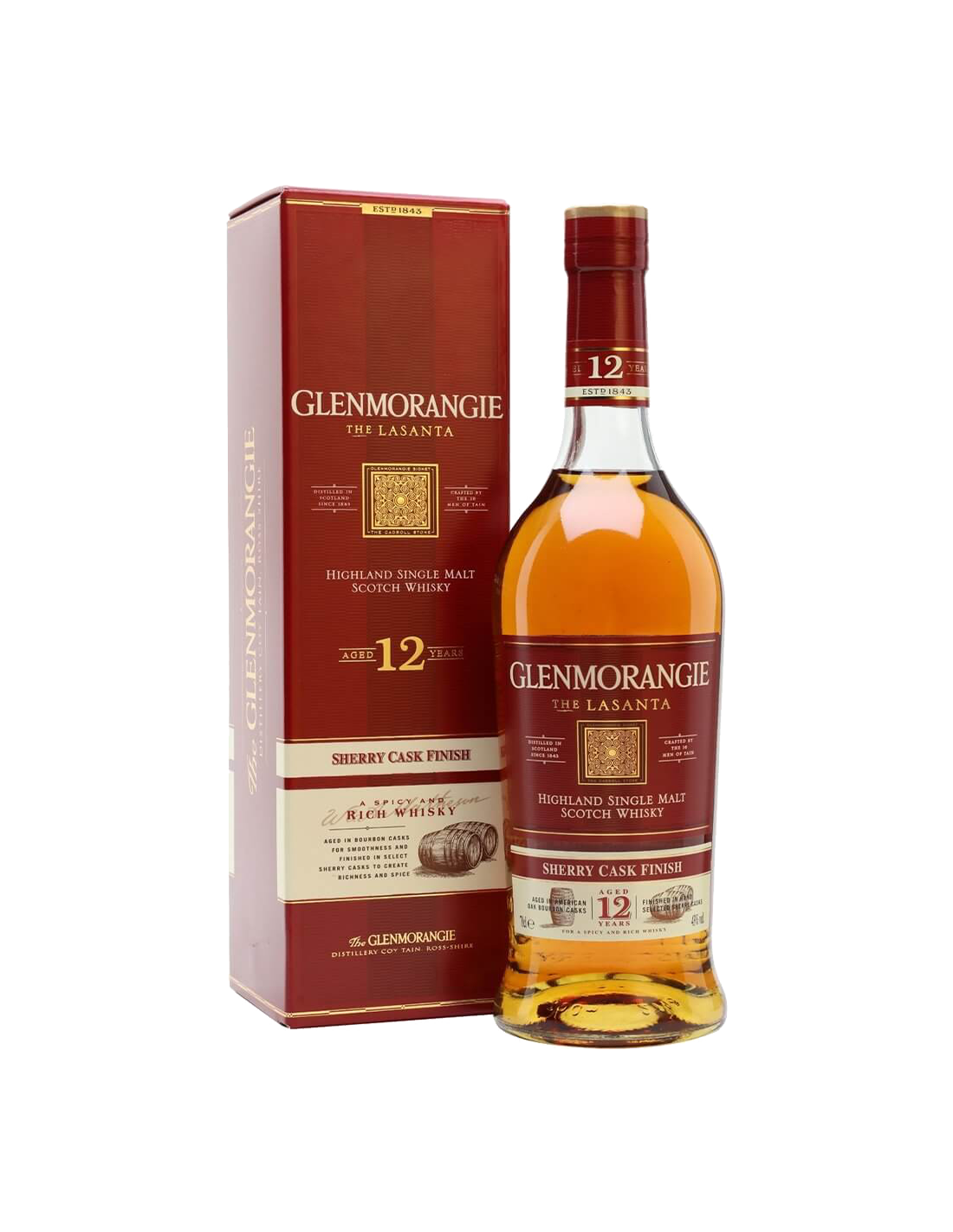 Der 'Lasanta' von Glenmorangie ist ein eleganter und vollmundiger Scotch Whisky, der in den Highlands produziert wird. Er reift 10 Jahre in ehemaligen Bourbon-Eichenfässern und wird für weitere zwei Jahre in ehemaligen Oloroso-Sherryfässern aus Jerez in Spanien gelagert. Das Wort 'Lasanta' bedeutet im Gälischen Wärme und Leidenschaft, nicht nur in Erinnerung an die spanische Herkunft der Oloroso-Sherryfässer, sondern auch für diesen Ausdruck mit einer weichen und tiefen Textur sowie seinem süßen und verführerischen Aroma. Nicht kalt gefilterter Whisky, um seine Aromen und Geschmäcker unverändert zu bewahren. Vollmundig und süß, mit Noten von Sherry, Rosinen, Karamell und Nuancen von Nüssen und Orangenscheiben. Langer und leicht trockener Abgang mit Noten von gewürzter Orange und Schokolade.