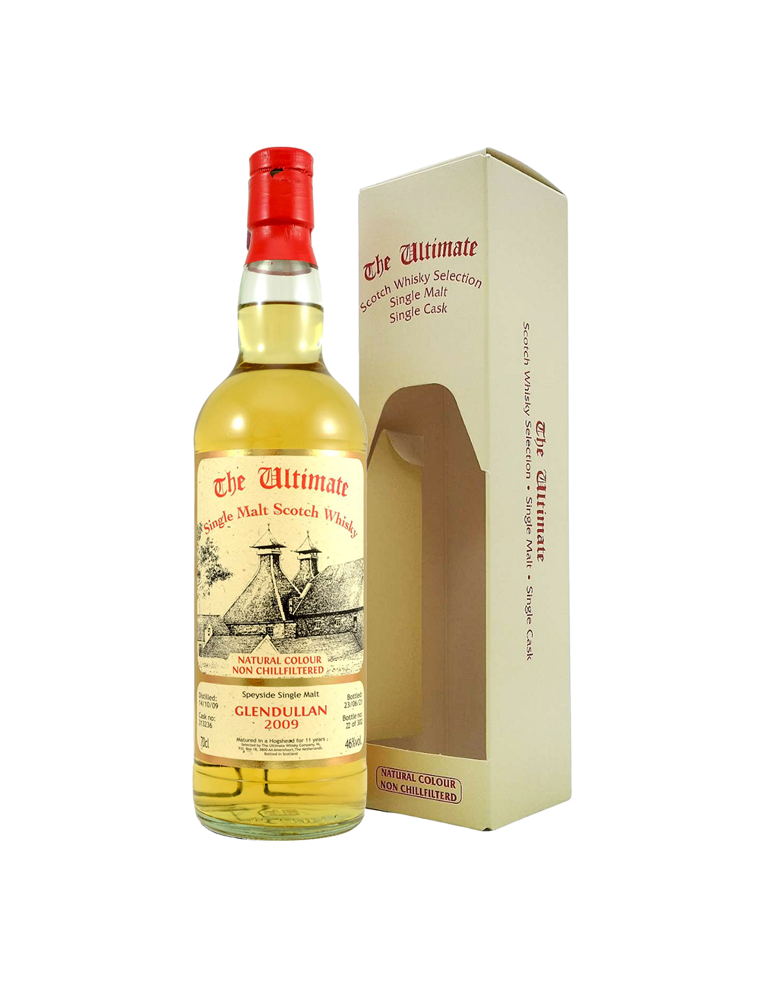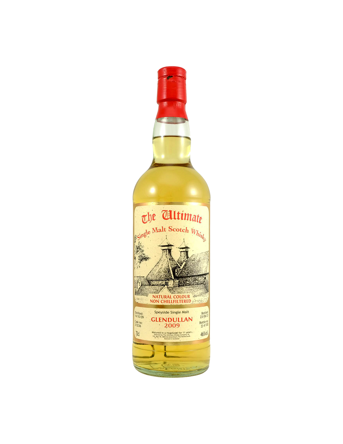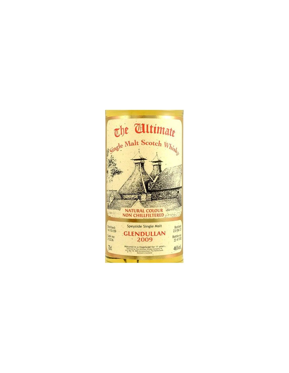Der Single Malt Scotch Whisky 'Glendullan' 2009 13 Jahre von The Ultimate Whisky Company wird nur in den besten Fässern gereift und ohne Kaltfiltration abgefüllt, sodass alle ursprünglichen Aromen erhalten bleiben. Es wird kein Karamell hinzugefügt, sodass die Farbe immer dem Ursprungsfass entspricht. Da die Fässer jedes Mal unterschiedlich sind, kann sich der Charakter des Produkts ständig ändern. Dieser Whisky strahlt Individualität, Charme und Ausdruckskraft aus. Fruchtig und würzig, Aromen von Orangen und Beeren gehen Hand in Hand mit Nelken. Ein süßer Unterton von Vanille und warmer Würze. Diese Fässer stammen aus Speyside. Jede Flasche ist nummeriert und alle Details des Fasses sind auf dem Etikett vermerkt.