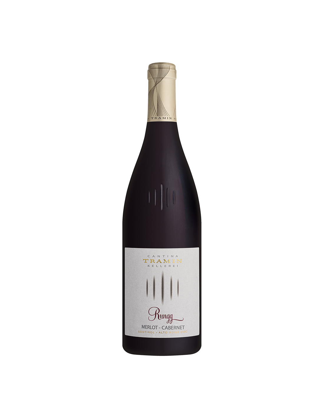 Alto Adige DOC Rosso « Rungg » de Cantina Tramin provient de Merlot, Cabernet Sauvignon et Cabernet Franc à Termeno. Sols de gravier calcaire et argile, climat méditerranéen avec fortes amplitudes. Macération à 26°C, fermentation en inox, élevage 12 mois en barriques et grands fûts, puis 6 mois en ciment. Rouge rubis intense, arômes de fruits rouges, cerise, épices, cacao. Bouche structurée, veloutée, persistante. Accords: viandes rouges, gibier, fromages affinés.