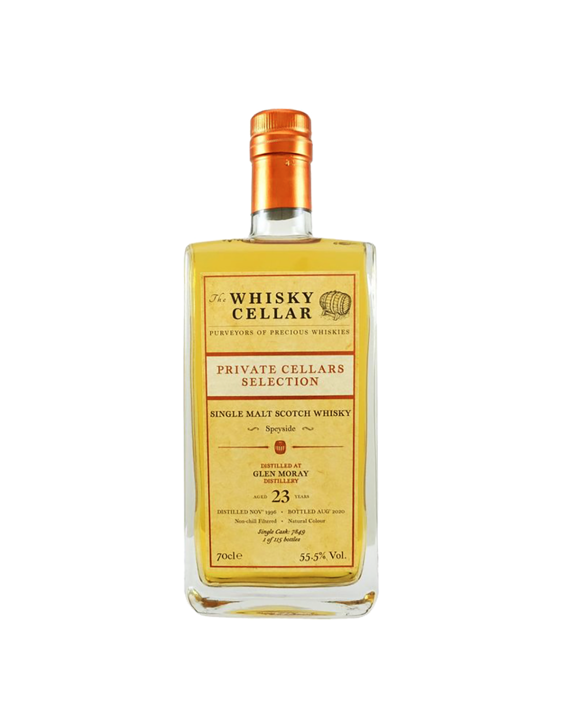 Le Single Malt Scotch Whisky 'Glen Moray' 1996 23 Ans de The Whisky Cellar fait partie de la sélection très exclusive de la ligne 'Private Cellars Selection'. Ce whisky délicat et doux au style fruité naît de la distillerie de Glen Moray dans la région de Speyside. Vieilli pendant 23 ans dans un seul fût de chêne américain, il a été distillé en novembre 1996 et mis en bouteille en août 2020. Au nez, des noix de pâtisserie française pleines de fruits sucrés et friables, zeste d'agrumes et chocolat blanc. En bouche, brioche au beurre, tarte aux pommes et cannelle, et noix sucrées, la finale offre une sensation délicate mais persistante de sirop et de céréales lactées. Seulement 115 bouteilles ont été produites.