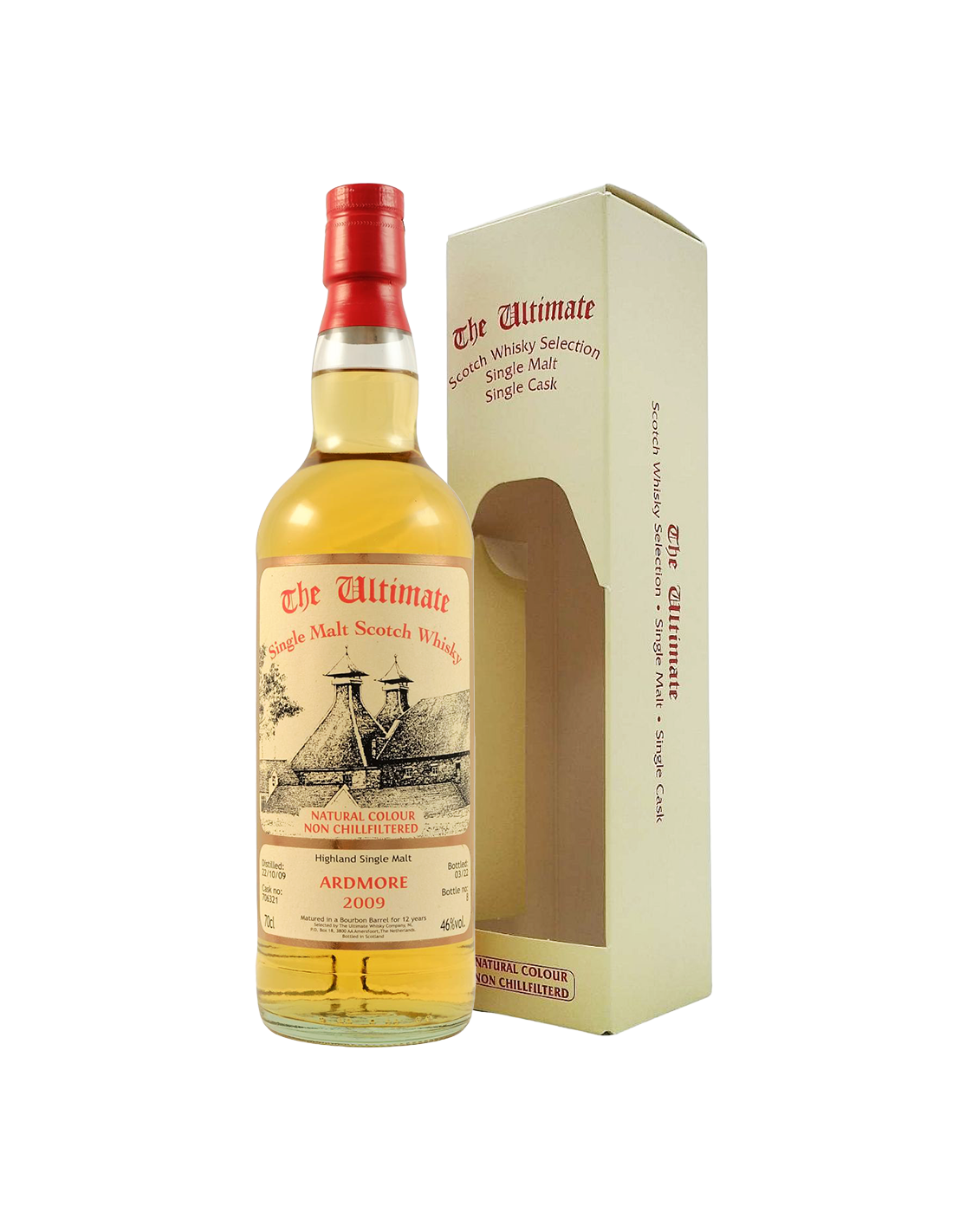 The Single Malt Scotch Whisky 'Ardmore' from The Ultimate Whisky Company was distilled at Ardmore, located on the island of Islay. A whisky with an unusual, aromatic, and smoky flavor, thanks to the peat rich in carbon notes and poor in sphagnum. Since the casks are different each time, the character of the product can change continuously. No caramel is added, so the color always corresponds to the cask of origin. It is aged only in the best casks and is bottled without cold filtration, so all the original flavors remain inside. Sweet notes of currant, licorice, and fresh mint. Aromas of lemon peel, ginger, and sweet smoke. Full finish. Limited production and numbered bottles. All the details of the cask are on the label.