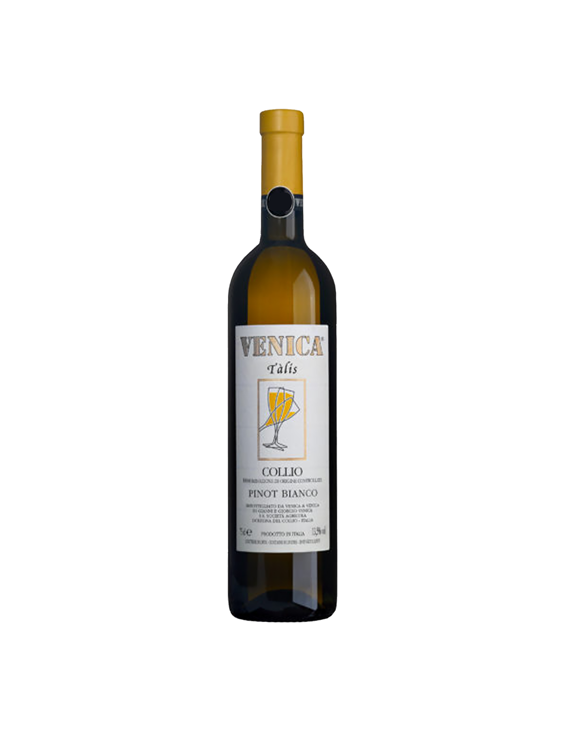 The Collio Pinot Bianco 'Talis' from Venica is an excellent wine, capable of expressing a multitude of precious aromas. Thanks to the fifty microclimates present in the approximately thirty hectares of land owned, particularly suited for white wines, the result of this splendid blend of ideal conditions is 'Talis'. Elegant and refined, fresh and sapid, a perfect representation of the high quality now achieved by the winery, a benchmark of absolute quality in the wine scene of Collio. Delicately pronounced bouquet with fruity notes of pear, apple, white peach and banana, herbs and wildflowers, wisteria, rose, hydrocarbons and toasted almond. Just the right salinity, lively freshness, great body and perfect balance. Structured, full, harmonious and enveloping, with a long persistence. Ideal as an aperitif, perfect with appetizers, shellfish, and white meat.