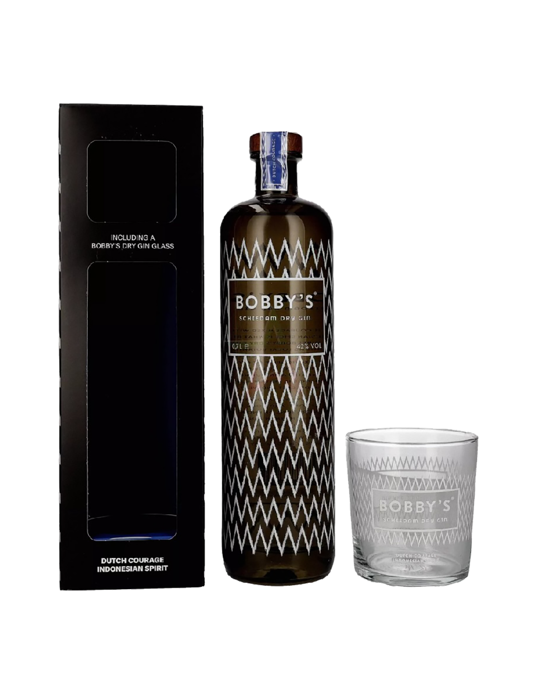 La bottiglia di Bobby’s Schiedam Dry Gin, ispirata alla tradizionale “kruik” olandese e decorata con pattern indonesiani, racchiude il simbolo di una storia di ricordi, famiglia e radici lontane. È un gin premium che celebra la memoria e la scoperta, perfetto per un Gin & Tonic raffinato o per cocktail che evocano viaggio e nostalgia.