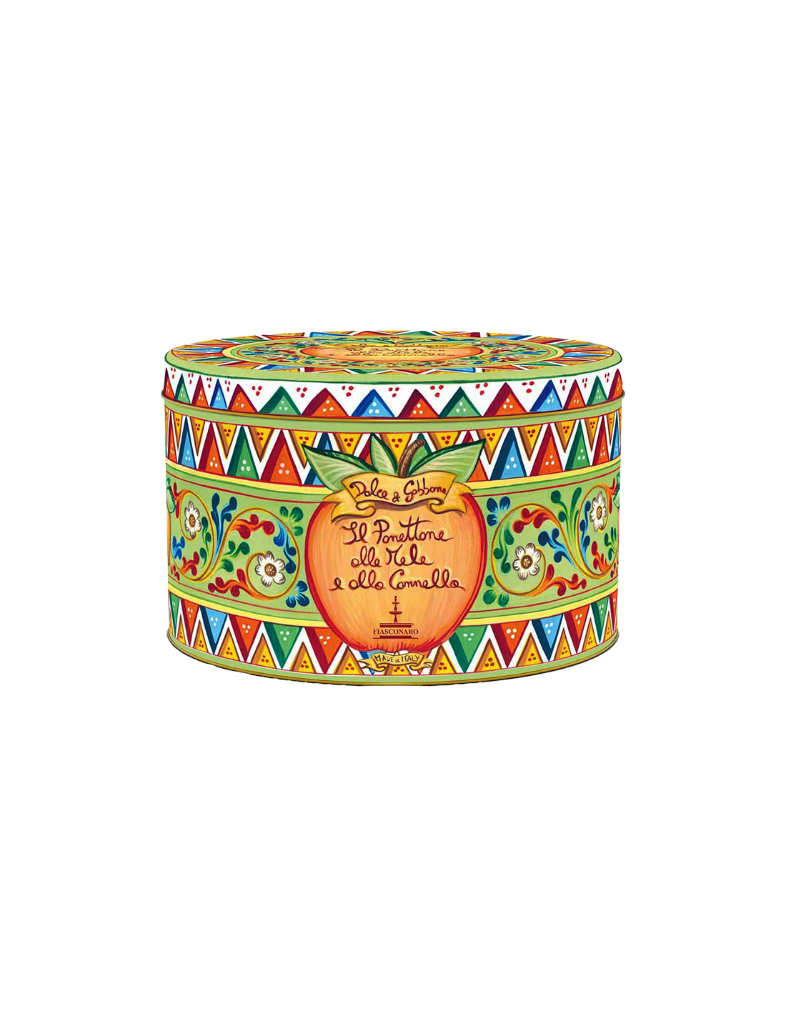 Dalla sinergia tra Dolce & Gabbana e Fiasconaro prende vita il Panettone Mela e Cannella, un capolavoro di artigianalità e stile. La lievitazione naturale a lenta maturazione esalta la sofficità dell’impasto, che accoglie la dolcezza delicata della mela candita unita al profumo avvolgente della cannella, creando un’armonia di sapori tipicamente natalizia. Ogni dettaglio è curato con maestria, dalla scelta delle materie prime siciliane d’eccellenza fino alla spettacolare confezione artistica firmata Dolce & Gabbana, un vero gioiello da collezione che rende questo panettone non solo una delizia da gustare ma anche un regalo iconico che celebra la tradizione italiana con eleganza contemporanea.