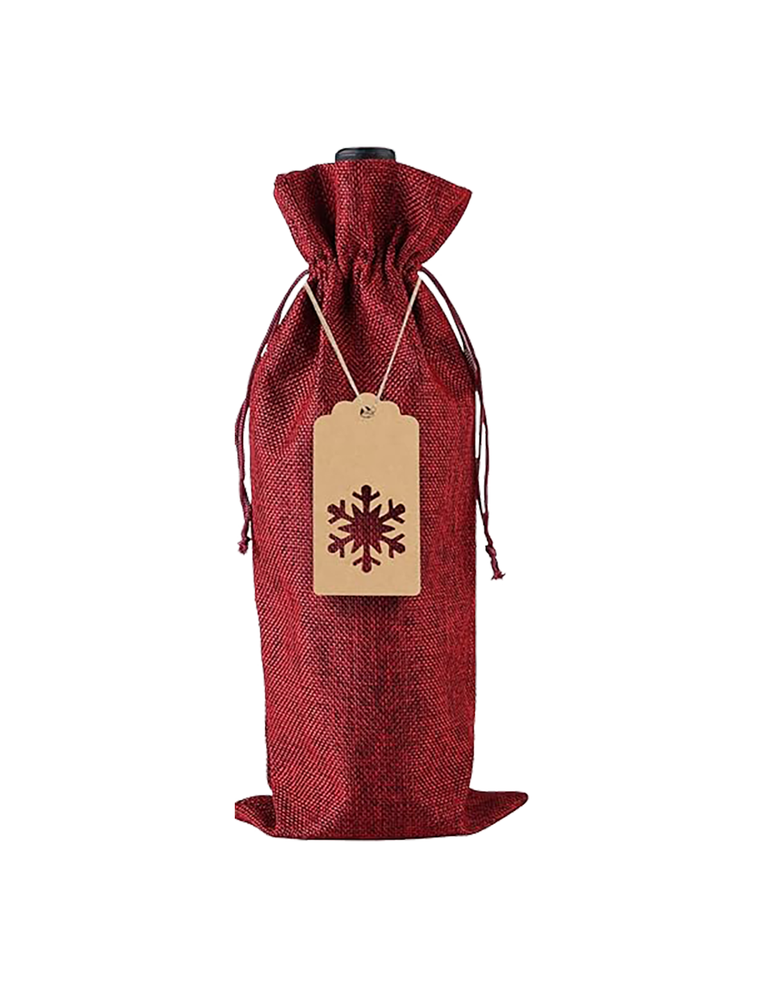 Realizzato in iuta naturale morbida e resistente, misura circa 34 x 15 cm ed è dotato di una coulisse in cordino di iutache consente una chiusura semplice e sicura. La confezione è impreziosita da una etichetta in cartone con fiocco di neve, ideale per personalizzare il regalo durante le festività. Perfetto per confezioni regalo natalizie, eventi aziendali o omaggi eleganti, questo sacchetto esalta il valore della bottiglia contenuta, rendendo ogni dono unico ed evocativo.