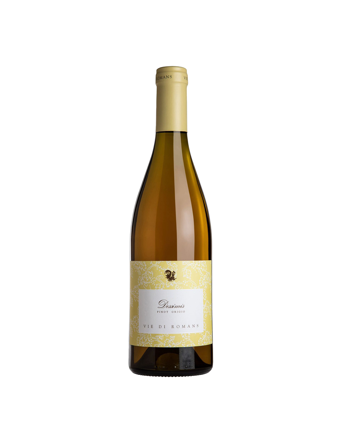 Il Friuli Isonzo DOC Pinot Grigio “Dessimis” di Vie di Romans nasce da vigne con 26 anni di età media, radicate in terreni poco profondi, ricchi di scheletro e argille rossicce, ricche di ossidi di ferro e alluminio, che garantiscono ottimo drenaggio e mineralità. Vinificazione con macerazione a freddo, fermentazione controllata, 9 mesi sui lieviti con illimpidimento naturale e 9 mesi di affinamento in bottiglia. Colore paglierino con riflessi ramati, profumi di albicocca, melone, agrumi e spezie dolci, gusto pieno, fresco e sapido. Perfetto con crostacei, pesce elaborato e carni bianche in salsa.