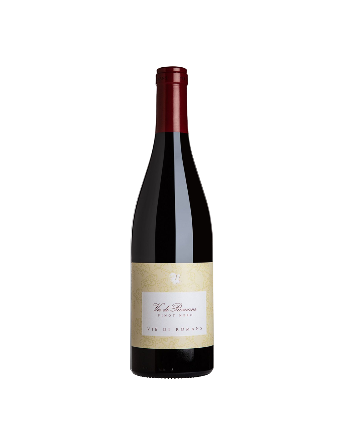 Il Friuli Isonzo DOC Pinot Nero di Vie di Romans nasce da vigneti di 10 anni coltivati su terreni mediamente profondi, con scheletro abbondante e suoli da limoso sabbiosi a limoso argillosi, dal caratteristico colore rossicciodovuto agli ossidi di ferro e alluminio, ben drenati e a bassa capacità di trattenuta idrica. La vinificazione accurata è seguita da un affinamento di 14 mesi in barrique, un mese in acciaio per l’illimpidimento naturale e 20 mesi in bottiglia, che ne affinano eleganza e complessità. Al naso sprigiona note di ribes rosso, mirtillo, ciliegia e spezie dolci, mentre al palato è fresco, equilibrato e avvolgente, con tannini setosi e lunga persistenza. Perfetto con carni rosse, selvaggina, formaggi stagionati e risotti saporiti, è un’armoniosa espressione del terroir friulano.